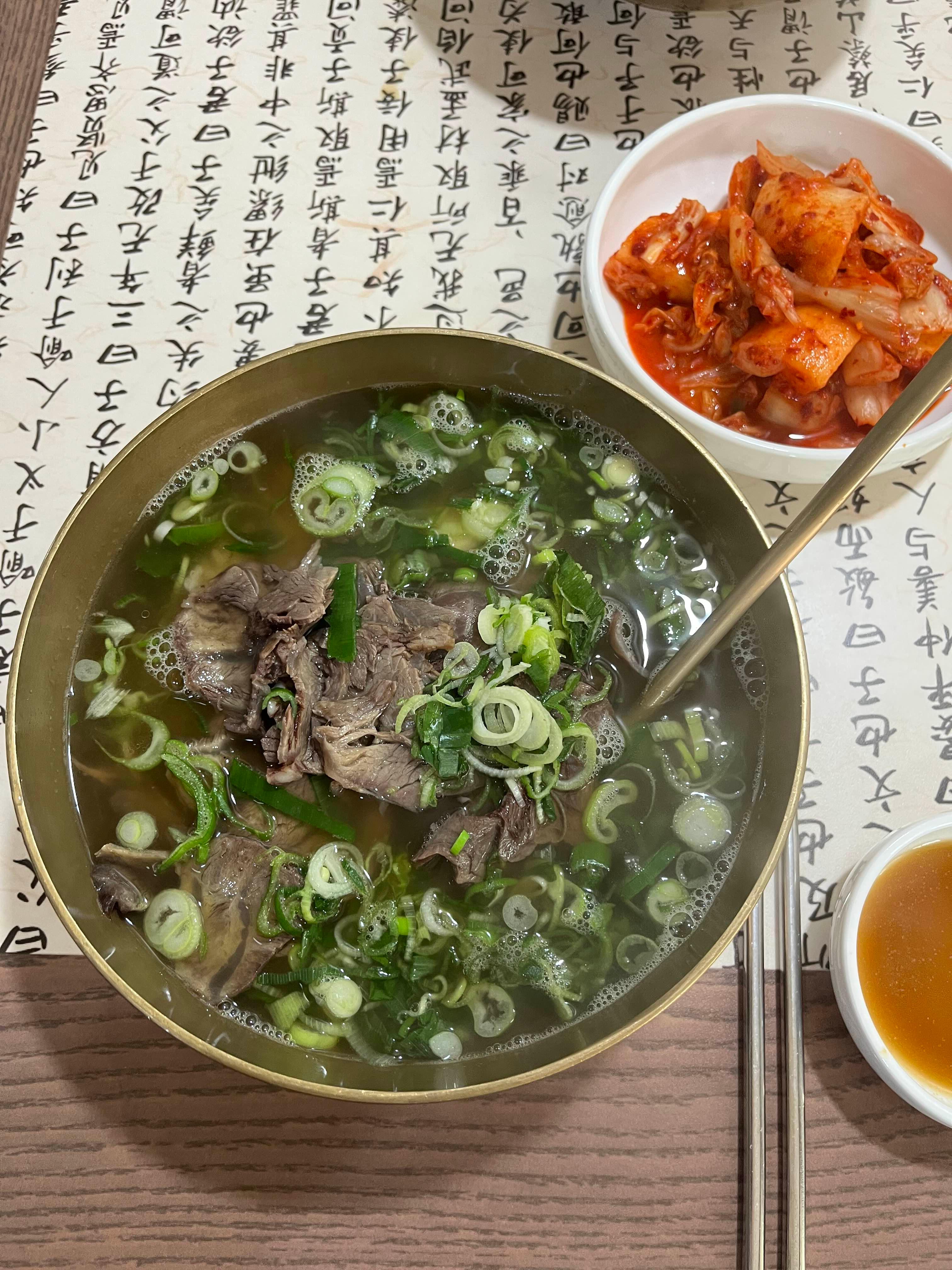 지인과 수다 떠는 사이 곰탕이 나왔습니다.