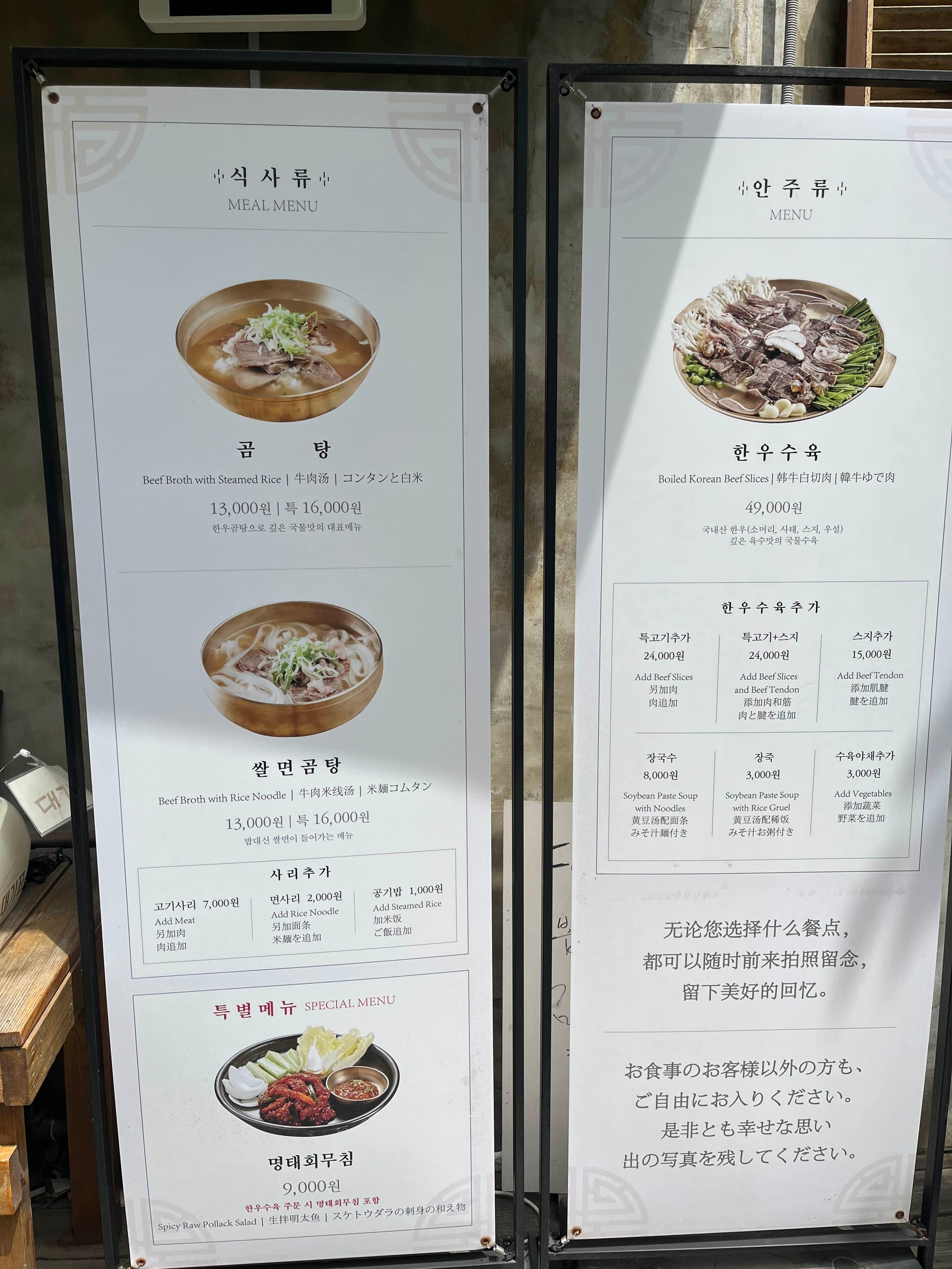 메누 중 특이하게 쌀면곰탕이 있네요.
